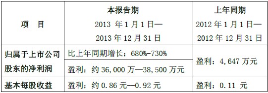 1月27日晚间,中国重汽(000951)披露业绩预告,预计2013年,公司实现归属于上市公司股东的净利润约36,000万—38,500万元,同比增长680%-730%。公司表示,公司2013年度加强成本的有效控制,提升了公司的盈利水平。
