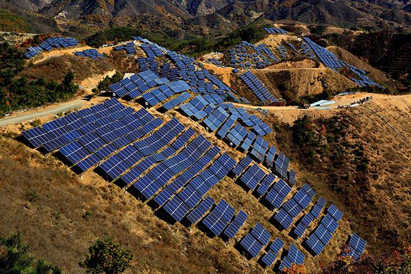 10月28日,工人在秦皇岛市隔河头光伏发电项目建设工地施工。近日,河北省秦皇岛市青龙满族自治县隔河头光伏发电项目加紧建设。据介绍,该项目是秦皇岛地区首个选择在荒山上建设,不占用耕地和林地的光伏发电场,计划投资3.59亿元,装机规模为20兆瓦,预计11月底并网发电。