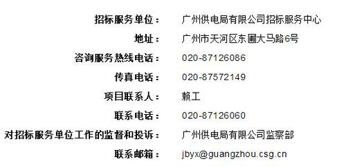 报名及获取招标文件地址:广州市天河区东圃大马路6号广州供电局有限公司招标服务中心一楼服务大厅